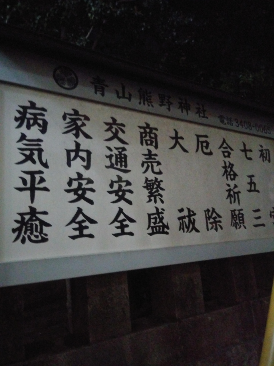 都心にある神社ですが、緑豊かで敷地もそれなりに広く、熊野神社らしい雰囲気がありました。夜だからか特にお守りなどの販売所はなかったです。