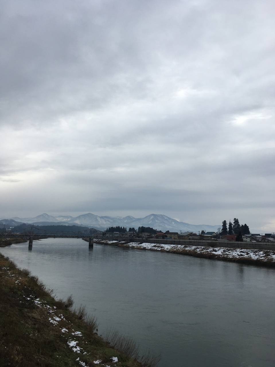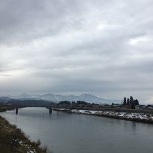 山形行きの電車が来るまでかなり時間が余っていたので有名な最上川を見に行こうと散策しに行きました!大石田駅から歩いて20分ほどで見えてきました。雄大な川の向こうに見える雪をかぶった山々が本当に綺麗でした。