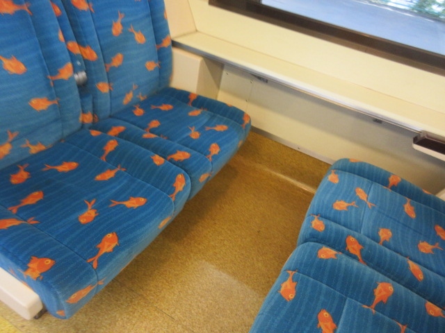 旅行で伊豆急行に乗ったのですが、今回もたまたまキンメ号が来てくれました。リゾート21は伊豆急行の列車の一部で、豪華なのに特に特急料金とか特別料金がかからず乗れる、とてもいい電車です。普通の電車と比べると大きな差なので(普通のは地味すぎる)らkk-でした。キンメ号は赤のシートでお魚の絵が描いてあって、かわいらしい電車でした。