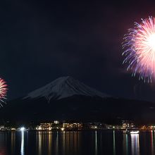 打ち上げ箇所は2か所あって、その間に富士山が見える場所に陣取りましたが、向かって右側の方からの花火が圧倒的に多く、左側は少ないです。右側の合間に上がる程度でした。