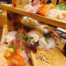 今回は、刺身9点盛り・カキフライ自家製タルタル・ジューシー鶏ザンギ・たこ足刺しを注文。