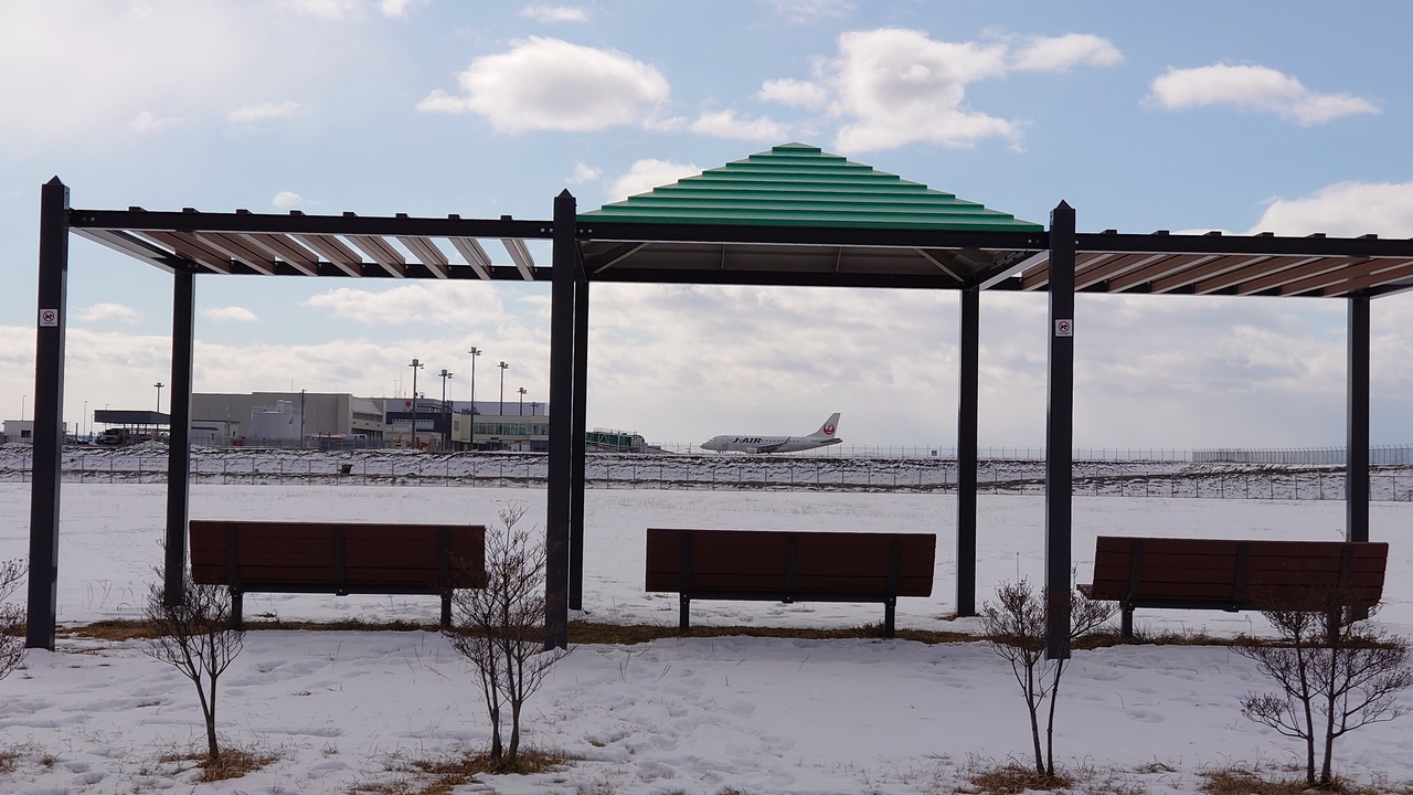 近くの観光地に立ち寄ったため、通りすがりに見てみました。隣接する公園があってそちらにも駐車場があります。地元の家族連れが雪の積もった公園の小高いところで遊んだり、飛行機を見に来たり、犬の散歩にきていました。