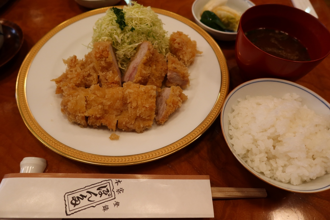 御徒町にあるパルコヤ上野の南にある商店街にある洋食店です。明治38年創業でカツレツの元祖と言われているお店です。土曜日の13時頃行くと店頭は入店待ちの行列。約30分程待って入店。お店は1階は厨房の前にカウンター席、2階にテーブル席が並んでいます。注文したのは勿論カツレツ。ライス、赤だし、おしんこが別料金と言うのは流石洋食屋。脂身を落としたロースカツは確かに美味しく、高い値段もある意味納得です。