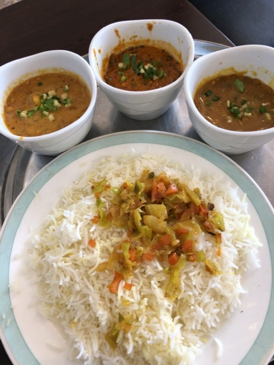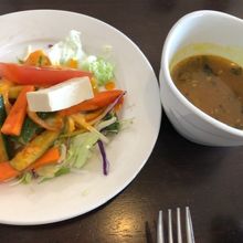 豆カレー、野菜カレー、シーフードカレーをチョイス。生野菜サラダとスープ、飲み物もついて1000円以内はとてもお得です!