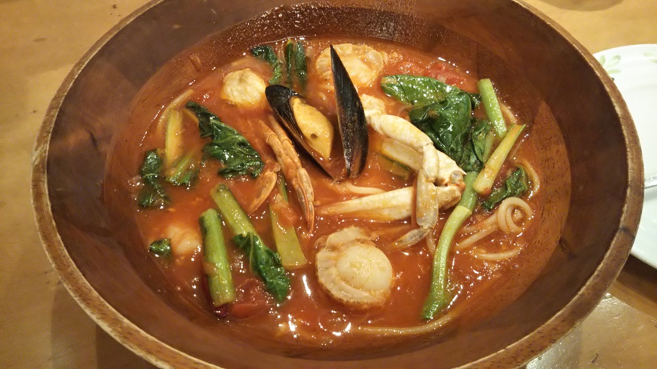 夕食で初めて利用しました。パスタの種類が充実していました。目移りしましたが、おすすめの生パスタのブイヤベース風にしました。海老や貝がたくさん入っていてトマトベースの酸味と旨味を感じるスープと合っていました。