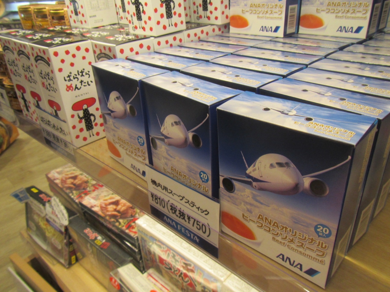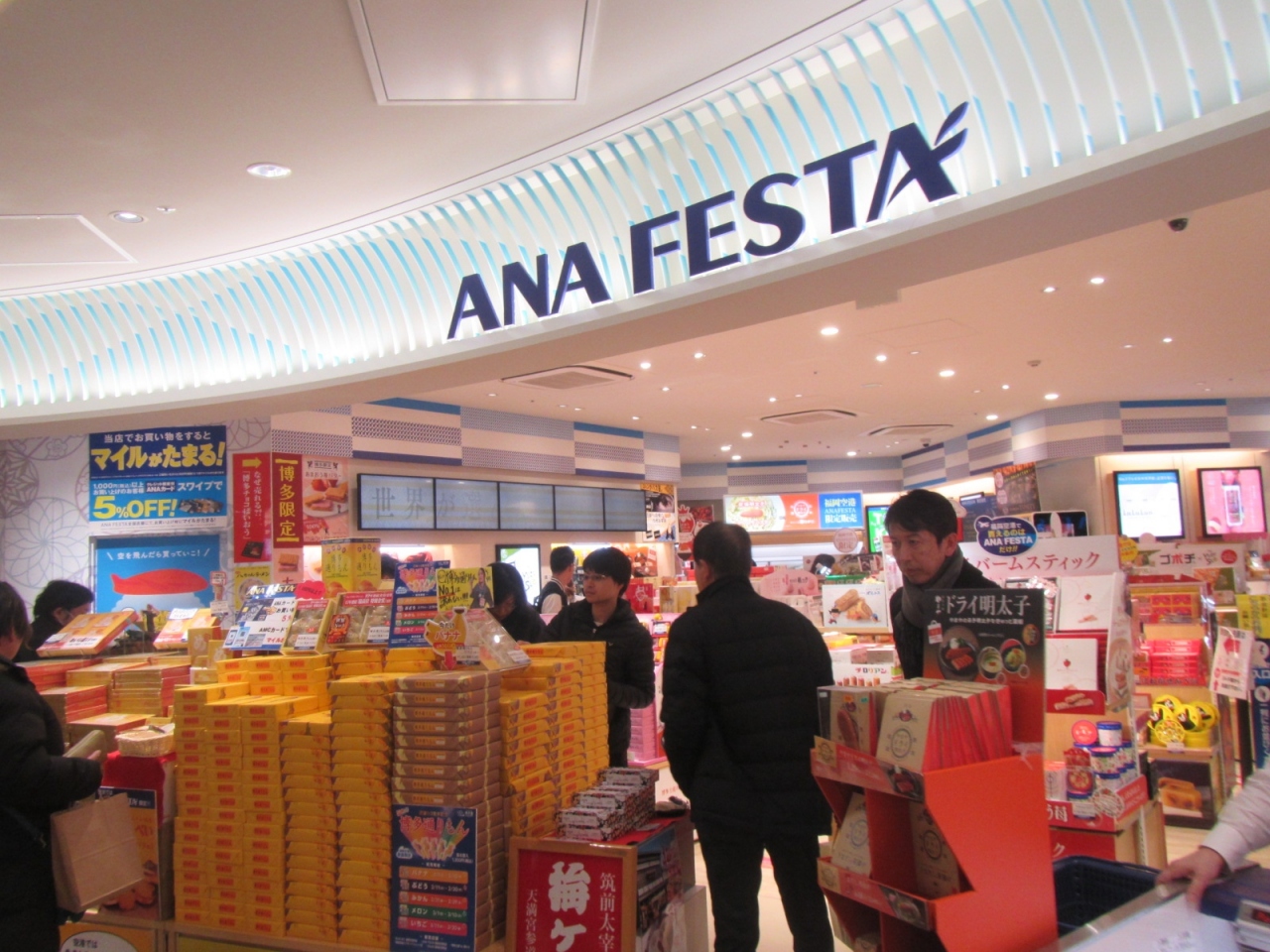 JAL系のBLUESKY、大丸などの店舗が並びますが、お菓子系のお土産に関しては大きく違いがある訳でもないので、ANA系のマイルを貯めている方はここを利用するとよいのではないでしょうか。