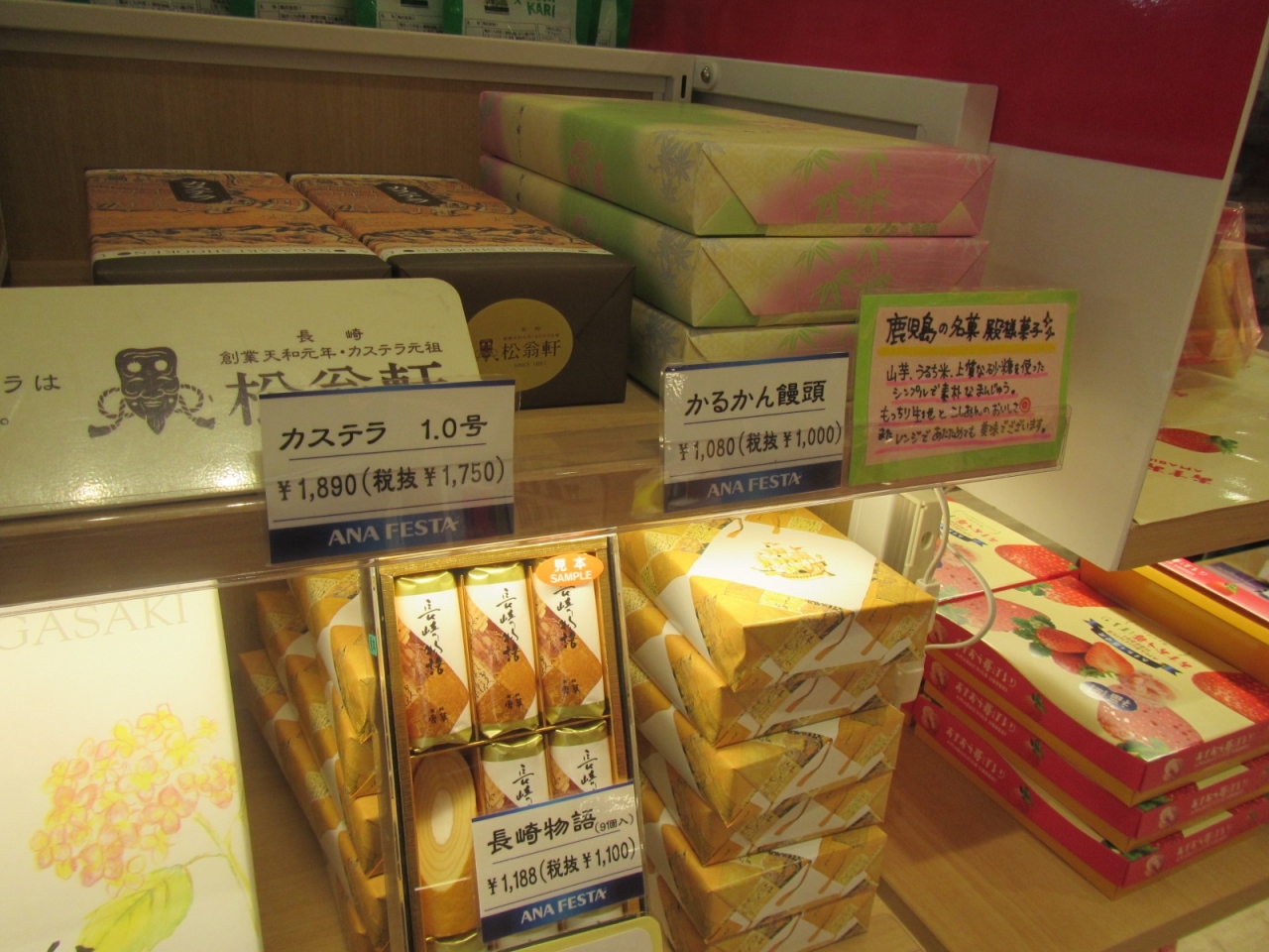 長崎のカステラ、鹿児島ブランドのお菓子も一部に置いていました。
