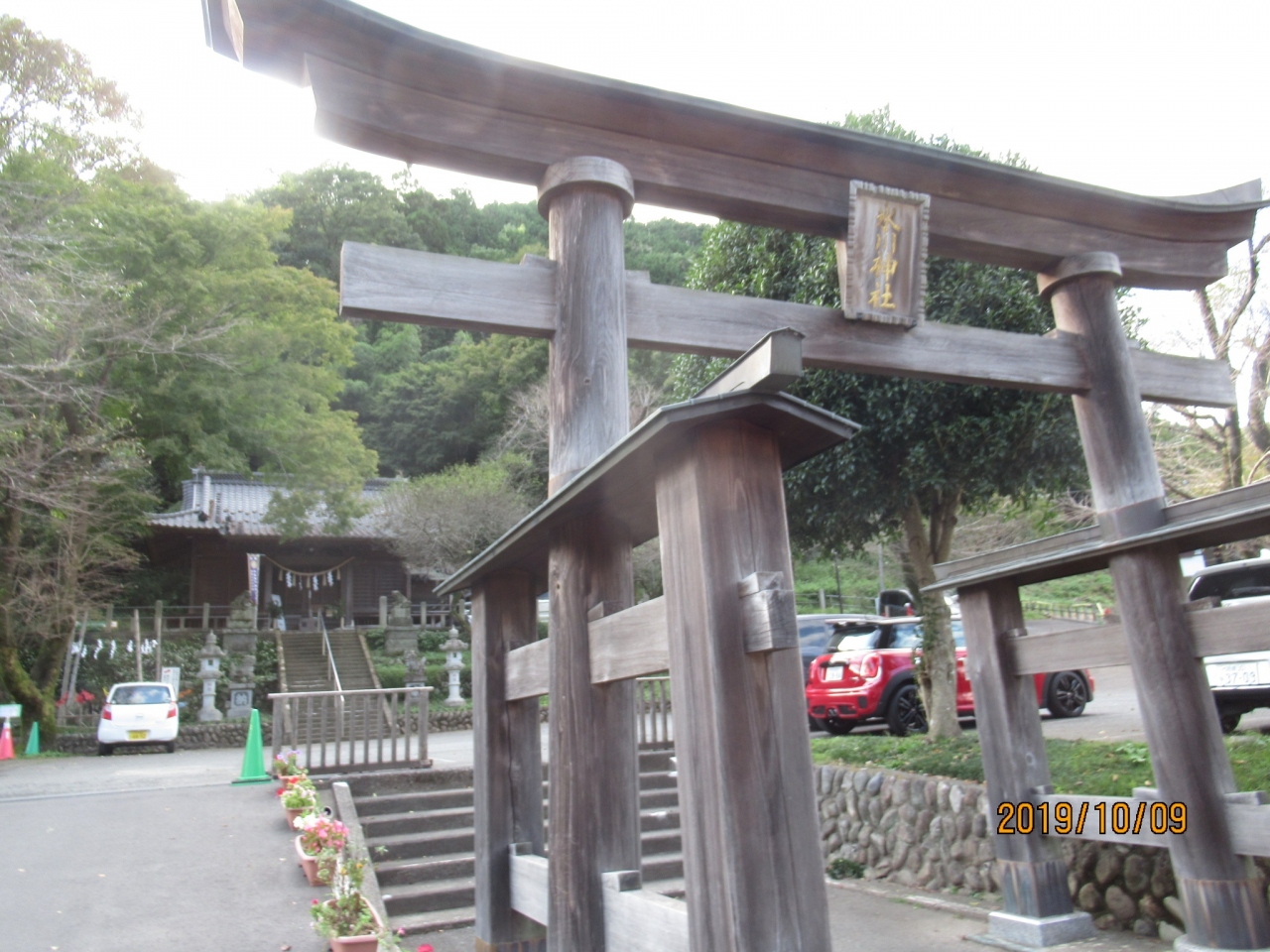 大きな鳥居のある神社で、御朱印も駐車場の入り口の建物でいただけます。