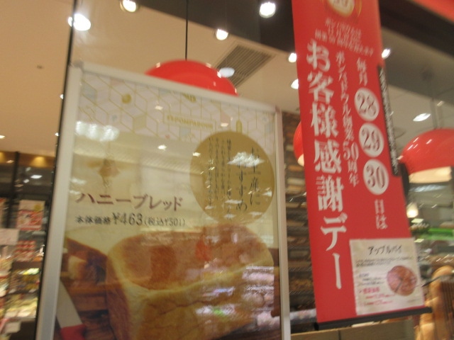 横浜そごうの地下にあるお店です。横浜で有名なパン屋さんです。赤い店舗看板などが目印です。いろいろなパンが売っているし、トングで自分で選べるので、色々楽しめます。今回はちょうどスタンプキャンペーンが始まったばかりでしたので、スタンプをためられたのも良かったです。700円でスタンプと、たまるとお買物券をいただけます。お得ですね。