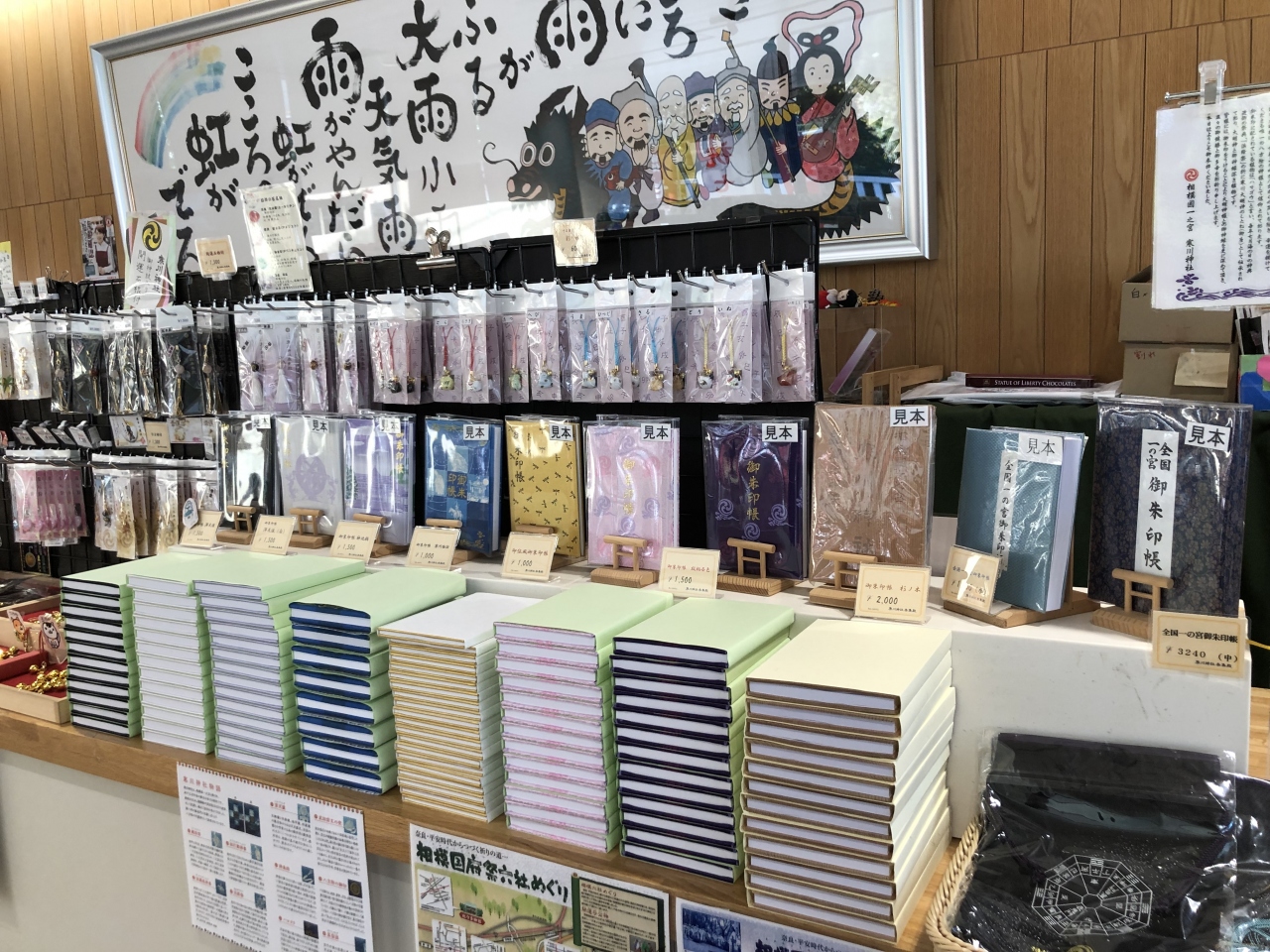 境内は広く、綺麗で厳かで、凛とした空気が張りつめていました。社殿へ向かう石畳と石灯篭が、何とも言えない味を出しています。神門前には狛犬がいますが、人より大きいです。お守りは拝殿向かいの授与所にて、御朱印は神門を出て左側の社務所にて、また御朱印帳は境内を出た西側にある鎮守の杜KoYoというお土産屋さんで購入できます。御朱印帳は10種類ほどありました。なお、このお土産屋さん、神社の経営かどうかはわかりませんが、本当にお土産屋さんで、神社グッズの他に、サービスエリア並みに相模湾の物産を幅広く取り揃えていました。