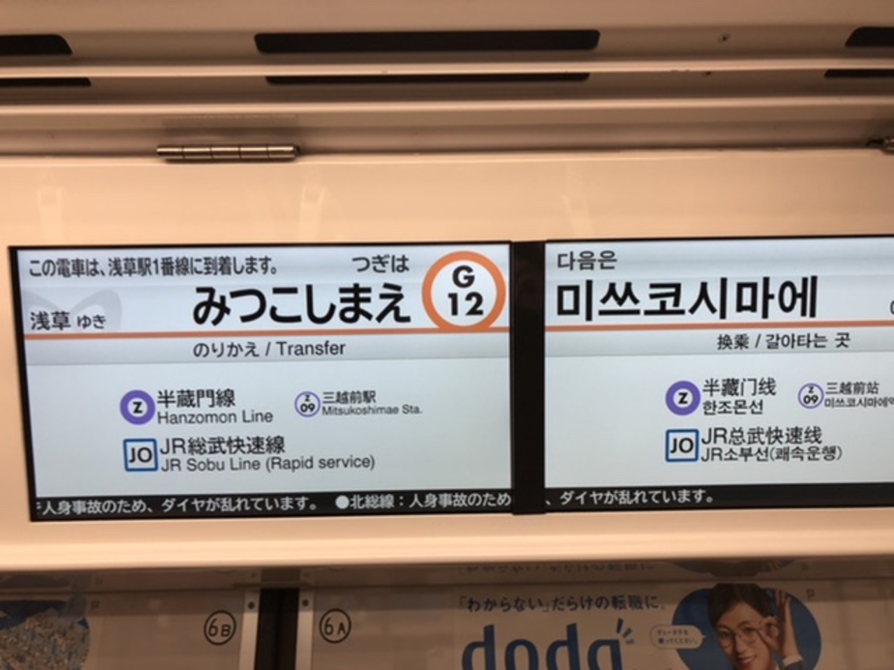渋谷駅から三越前駅まで行くのに利用しました。渋谷駅のホームの位置が変わってましたが、なんだな綺麗になり、まさに始発駅というような雰囲気になってました。電車に乗るとWi-Fiが入っており、しばらく快適に使えました。