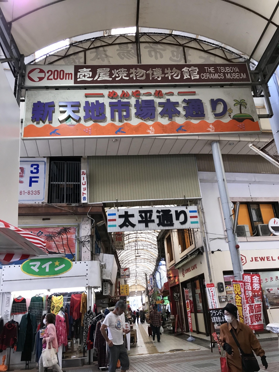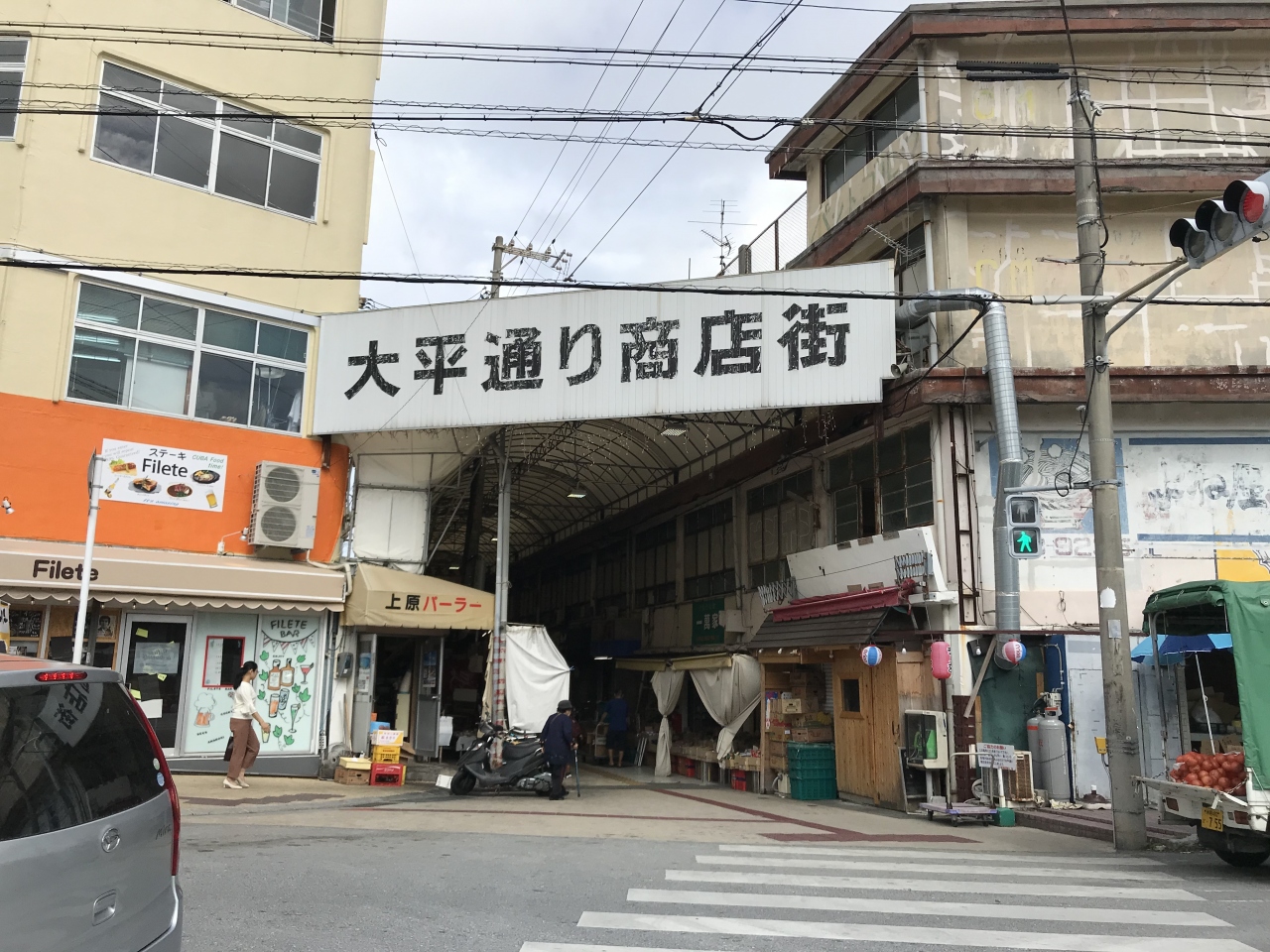国際通りど真ん中の市場本通り商店街の先、途中の改築中の公設市場あたりまでは観光の方々もくるけど、その先に新天地市場本通り商店街がありその先が太平通り商店街