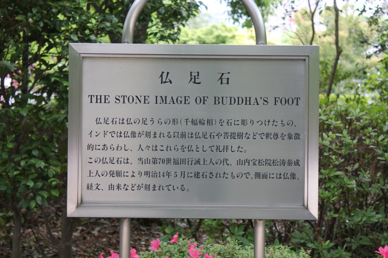 仏足石は釈迦の足跡を石に刻み信仰の対象としたもので、増上寺の仏足石もこのために明治14年に建石されたものだそうです。