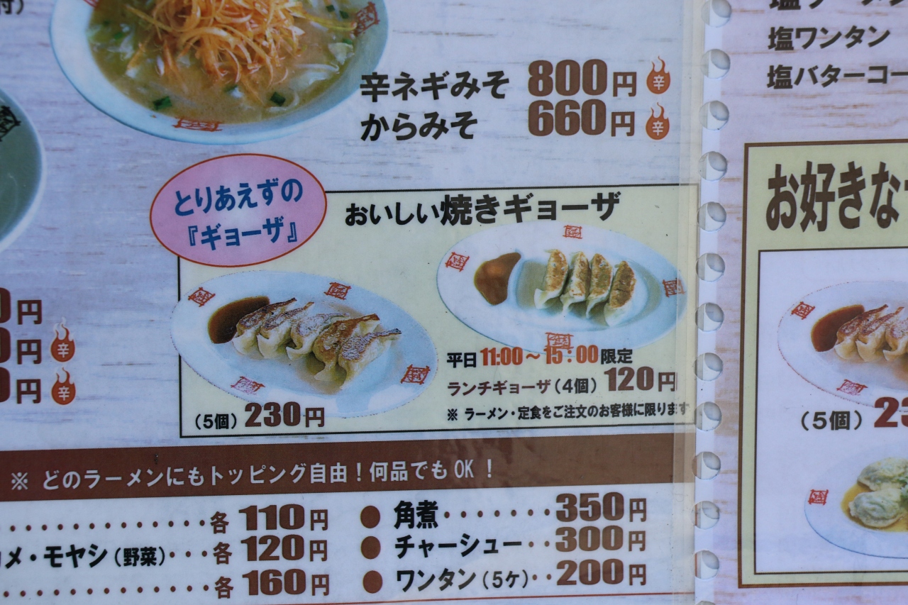 駅前を出てすぐ右側にあるラーメン屋さん。ラーメンが550円~と安価で種類も多く、定食類もあるので誰と行っても問題はなさそうです。味は・・・といった感じですね。テーブル・カウンター席とありお昼時は満席にはならないものの、混雑時は厨房に人が少ないこともあり提供まで少し時間がかかっていました。