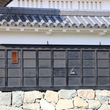 市内循環のバスを降りたところの近くにある門。内堀を渡った先にある門ですが、石落としや鉄砲を撃つための穴も再現されていました。段差がありますが、板でスロープが作られているので車いすなどでも安心して通過できます。
