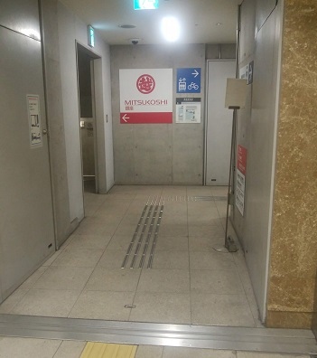 地下二階の食品売り場、総菜コーナーの奥の方に、小さい出入り口あり。銀座駅と東銀座駅とを結ぶ地下道とつながっています。東銀座駅・歌舞伎座方面から出入りするときにはとても便利です。