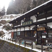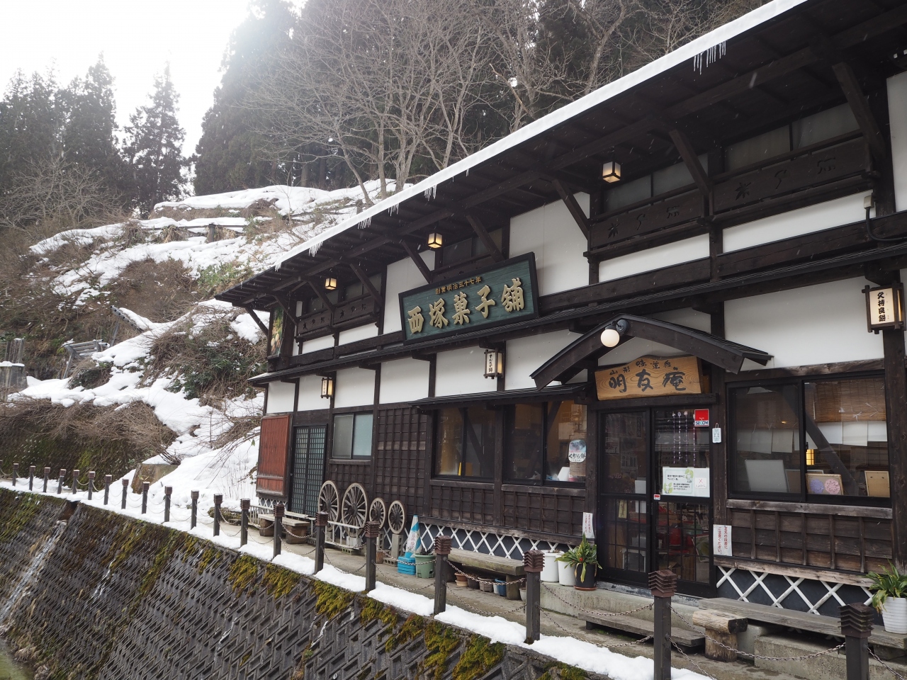 銀山温泉の温泉街の入り口付近にあるお店です。銀山温泉の温泉街の建物とマッチする感じでレトロな雰囲気でした。お店ではおまんじゅうが売られていて、1個からでも購入できたので、食べ歩きもできました。お土産にもぴったりだと思います。
