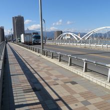 平日日中、海老名方面に続く車の渋滞を横目に、歩行者も自転車もほとんどいない歩道をテクテク。正面には丹沢大山の山々、眼下には相模川が流れる開放的な空間が良かったです。