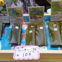午前10時少し前に市場本通りを歩いていたらこの和菓子屋さんを見つけました。カーサムーチー(1つ100円)と言うのが気になって紅いも味を購入。本来は旧暦の12月8日にお供えしたり食べたりするものだそうで、月桃の葉っぱに包まれたお餅です。月桃のホンワカとした独特な香りと素朴なお餅の味に沖縄を感じました。