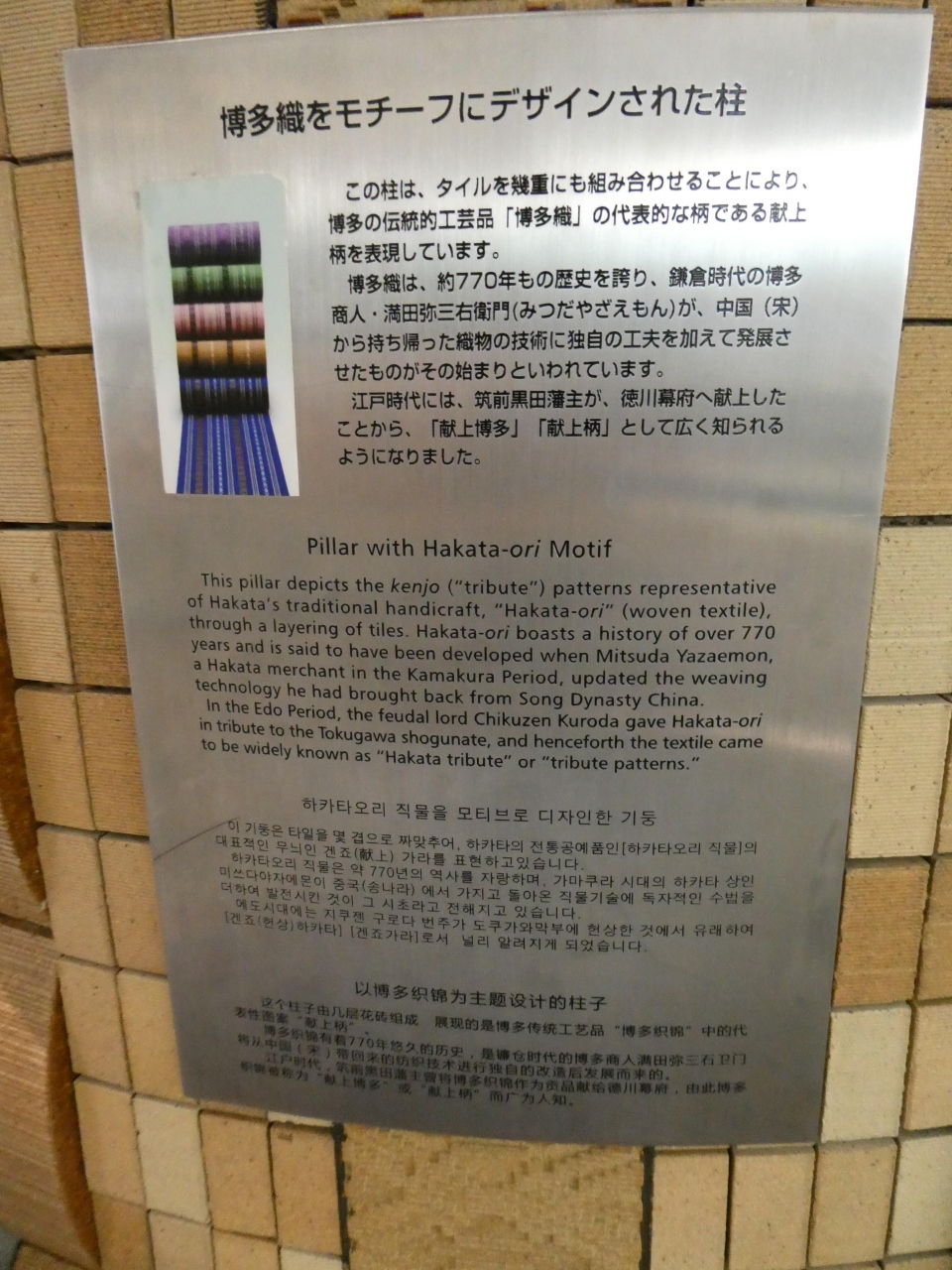 そのパネルの前に博多織をデザインして建ってる茶色い柱が有ってそちらの方が興味深かったです。