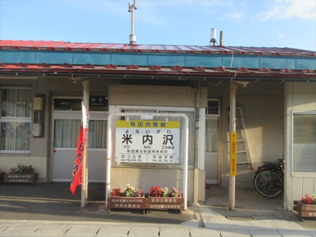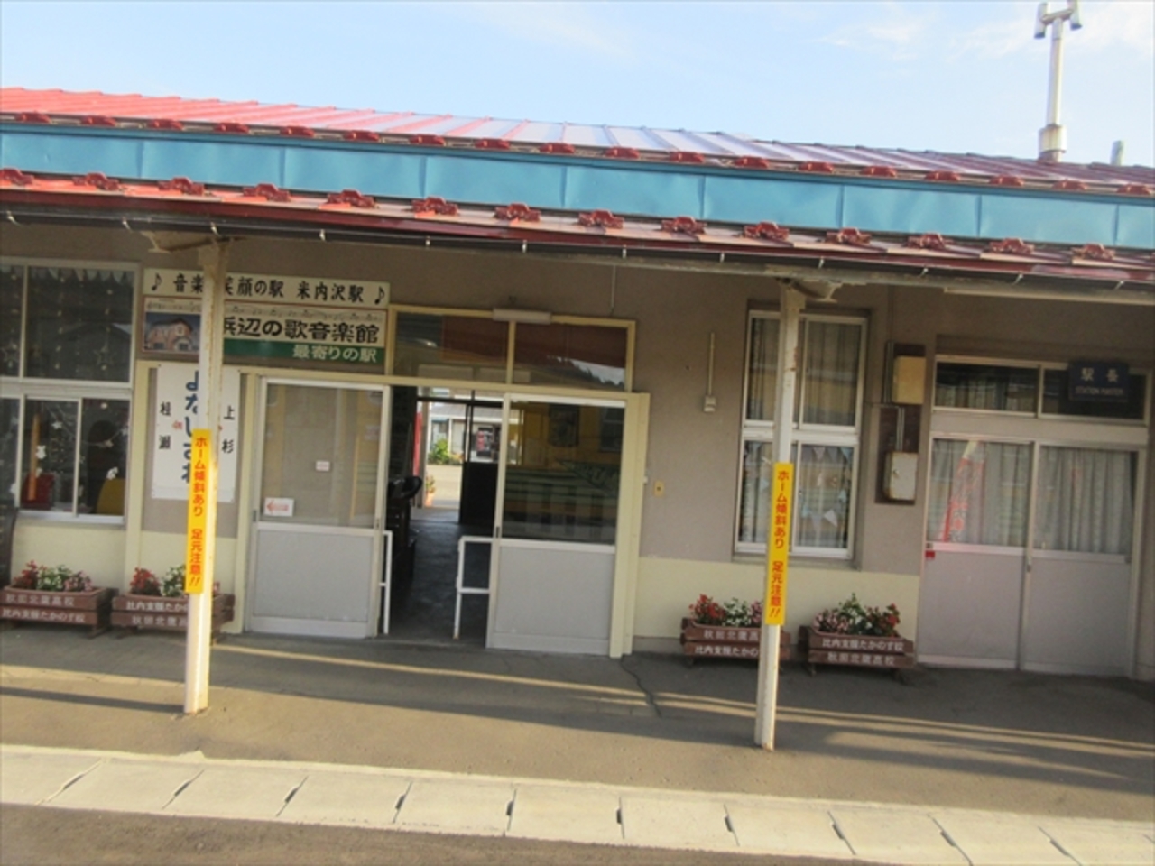 北秋田市にある秋田内陸縦貫鉄道秋田内陸線の駅です。かつては有人駅だったため、比較的立派な駅舎が残っていて、駅長室の看板もそのまま残っていました。駅舎の反対側にもホームがありますが、今は使われていないようです。無人駅ですが、時間制で委託業務もやっているようです。