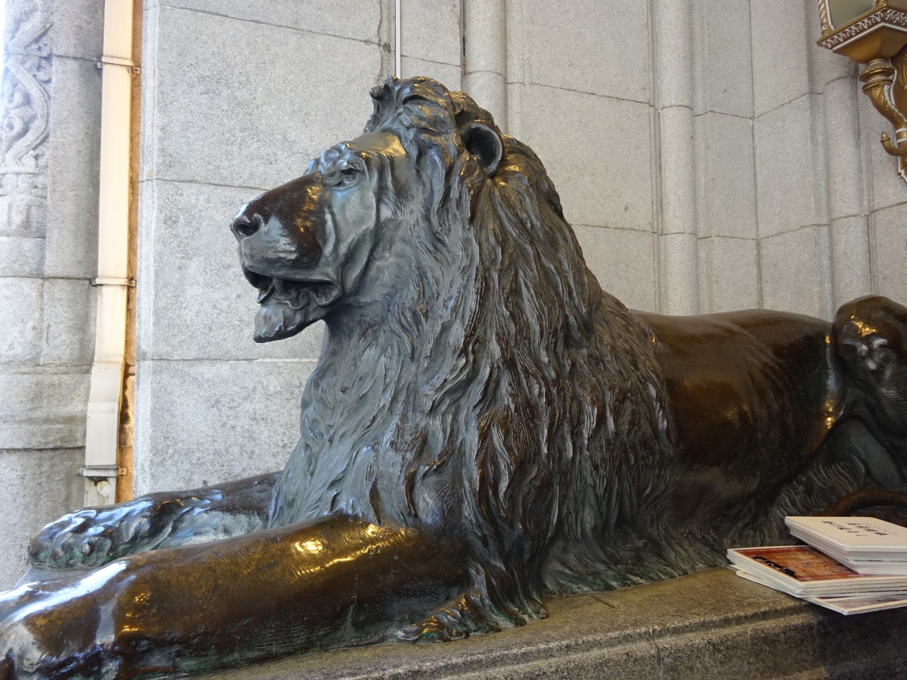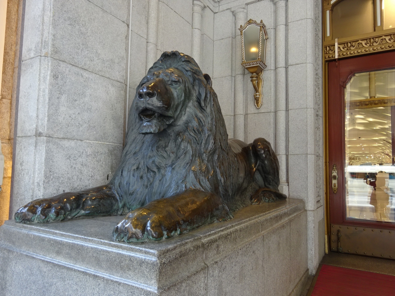 三越本店前に鎮座するブロンズのライオン像、三越といえばこのライオン像ですが、本店前のこの像だけは英国製です。