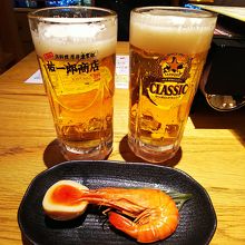 札幌出張時に利用。ジモティの方オススメの海鮮居酒屋です。とりあえず「サッポロクラシック」で乾杯!突き出しに、エビのうま煮!これだけでも、お店の「本気加減」が分かります。刺身盛り合わせ3人前が、クーポン利用でなんと¥980!!!\(^o^)/ほか。焼き牡蠣や氷下魚、ザンギなんかも頼んでお一人様¥3000ちょっとと、とてもリーズナブルで美味しゅうございました(^o^)