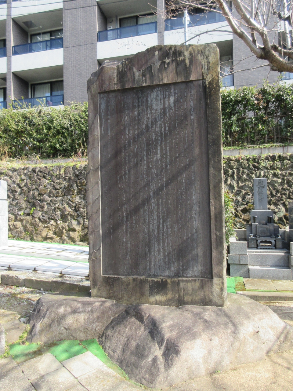 赤穂浪士の墓があることで知られる泉岳寺から、高輪学園横の細い路地を通って3分ほどのところに建つ浄土真宗の寺院です。特に見どころはありませんが、江戸時代終わりから大正時代にかけて活躍した日本画家・川端玉章先生の顕彰碑と川端家の墓が建っています。顕彰碑には漢字とカタカナで功績が刻まれていますが読みにくく、自宅に帰って調べたところ、明治時代に活躍した日本画家だったことが分かりました。寺は、泉岳寺と高輪1丁目都営アパートが建つ敷地内に残る赤穂義士切腹の跡地の間に建っているので、両方の地を訪れた際に立ち寄ってみてください。