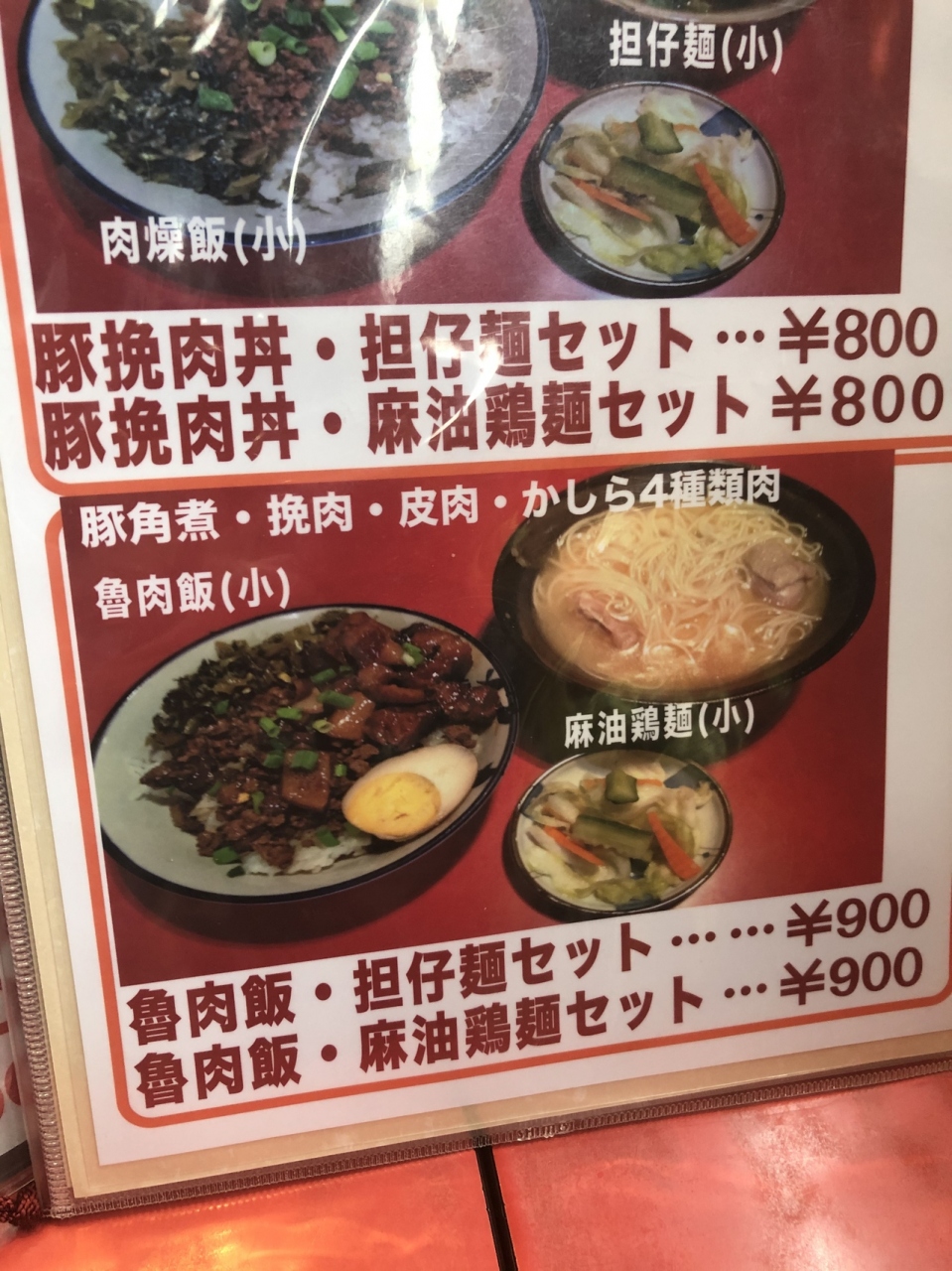 メニューを眺めていると、スタッフから「魯肉飯+麻油鶏麺セットか当店では人気です」との事、コレを注文した