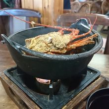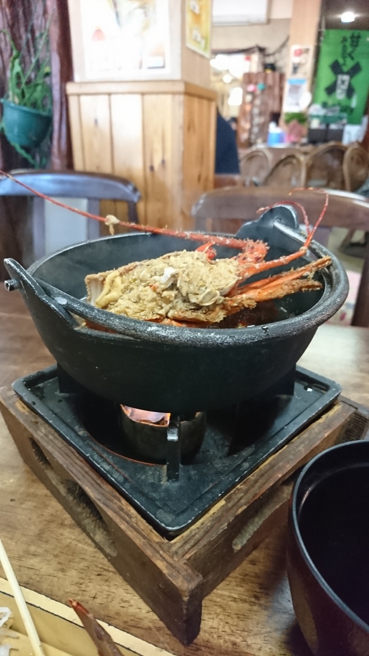 伊勢えびの頭はお味噌汁にしていただけます。お味噌が赤だしだったので、ちょっとしょっぱいく感じました。