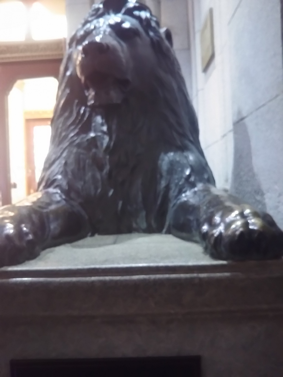 日本橋の象徴的な美術品として有名なこちらのライオンの前は定期的にテレビが登場する方法の日本橋の象徴だと思う。手の届く範囲で触ることも出来ますし近くで見ると実はそれほど大きくはないです。記念撮影するのに大変やと思います