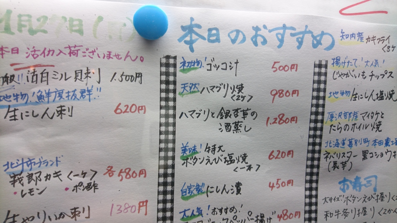 新しくJR函館駅の近くにできた活魚のお店です。以前は、五稜郭の方にあったと聞きました。店の名前の通り、イカの活魚が食べられます。しかし、漁がないと入らないので、いつでも食べられるというわけではないので、あったらラッキーと考えていった方がよいです。活イカを食べると、忘れられないくらいおいしいです。透き通ったイカにパキパキとした歯ごたえ。そしてイカの甘さ。今まで食べてきたイカとは全然違う感動の味でした。イカ以外の刺身もおいしかったです。また、行きたいお店です。