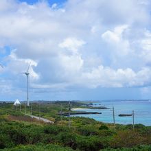 宮古島の西の端です。展望台があってそこから景色を楽しむことができました。遠くに池間大橋を見ることができました。またこの岬には大きな風車がいくつかありました。夏に行きましたが観光客はほとんどいなくて静かでした。