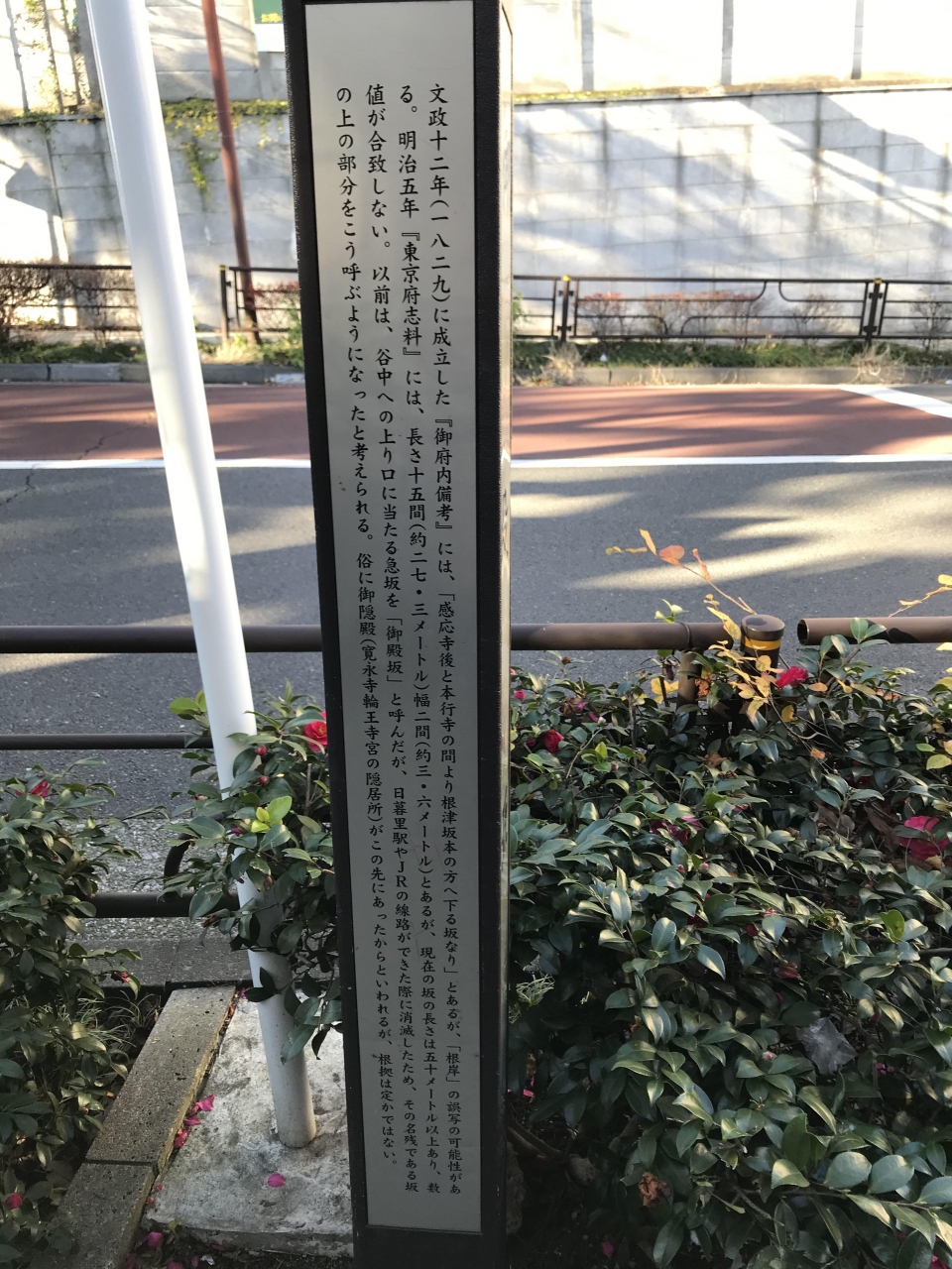 日暮里駅を出て、夕やけだんだんや谷中銀座に向かう途中にあるそこはかとない趣のある坂。