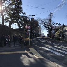 坂の左手には、江戸幕府15代将軍徳川慶喜や渋沢栄一、鳩山一郎らの武家・政治家や、横山大観・森繁久彌・円地文子らの芸能・文化人、その他スポーツ関係者・著名な学者等々多くの有名人や著名人のお墓がある谷中霊園がある。