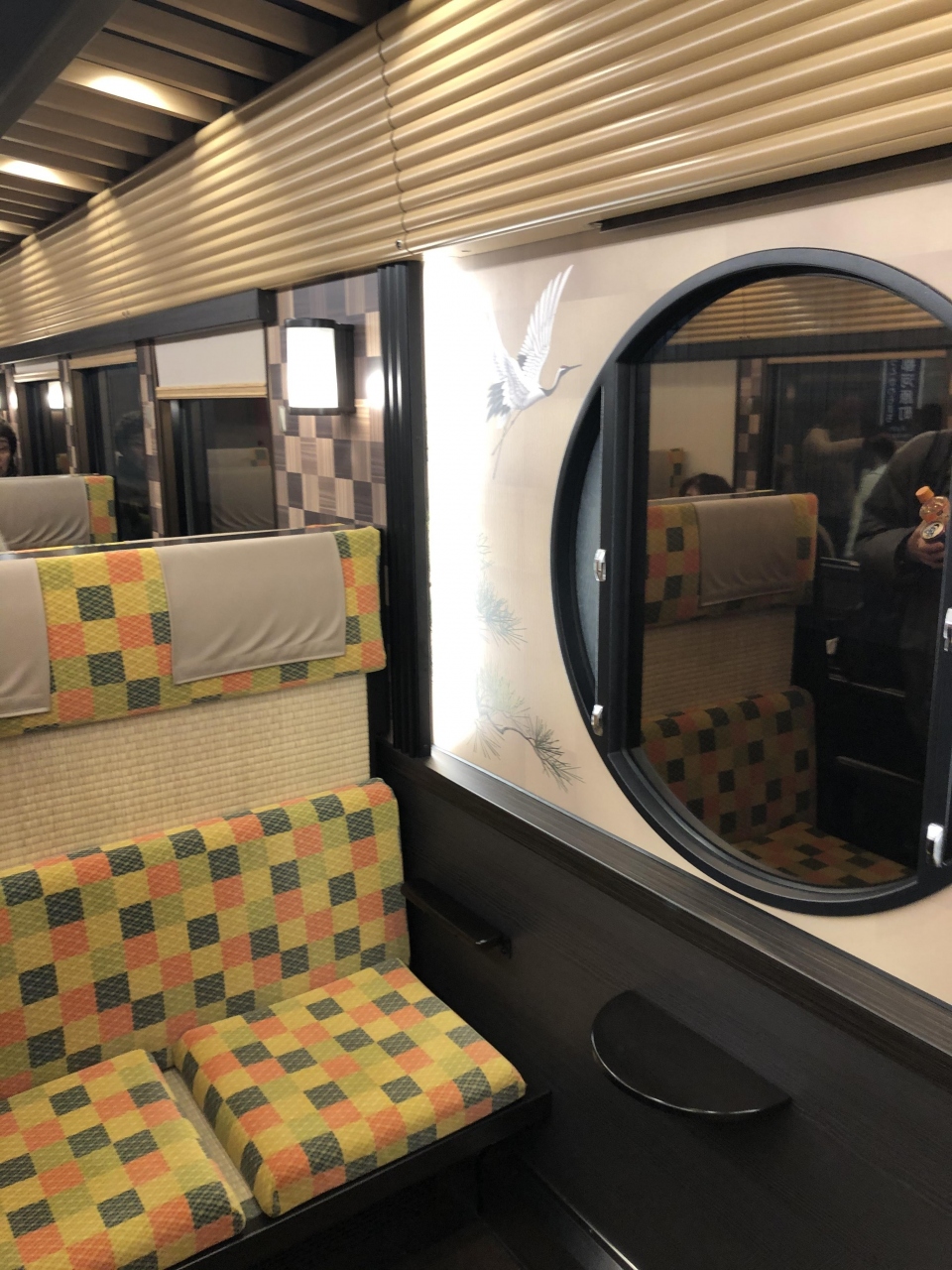 特筆すべきは和モダンで統一された車内の内装だ。6両編成すべて季節(春夏秋冬に早春、初秋)をテーマとしてデザインされている。乗車した瞬間から京の風情に浸ることができるおすすめの電車である。