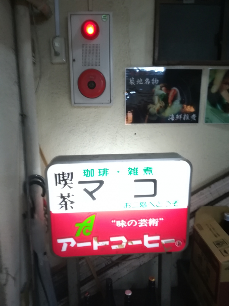 東京観光で築地場外市場で食事をしたあと、コーヒーで一休みしました。場所がわかりにくいですが、場外市場の建物の中通路に看板が出ています、階段を上がった2階にあります。小さな店内でちょっと狭いですがすが、マスターが親切で色々とお話出来よかったです。