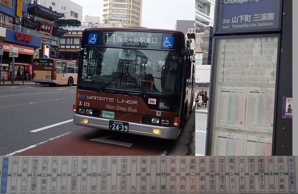 今回は横浜の「中華街入り口」バス停から「京急井土ヶ谷駅」バス停までを利用しました。