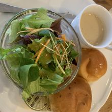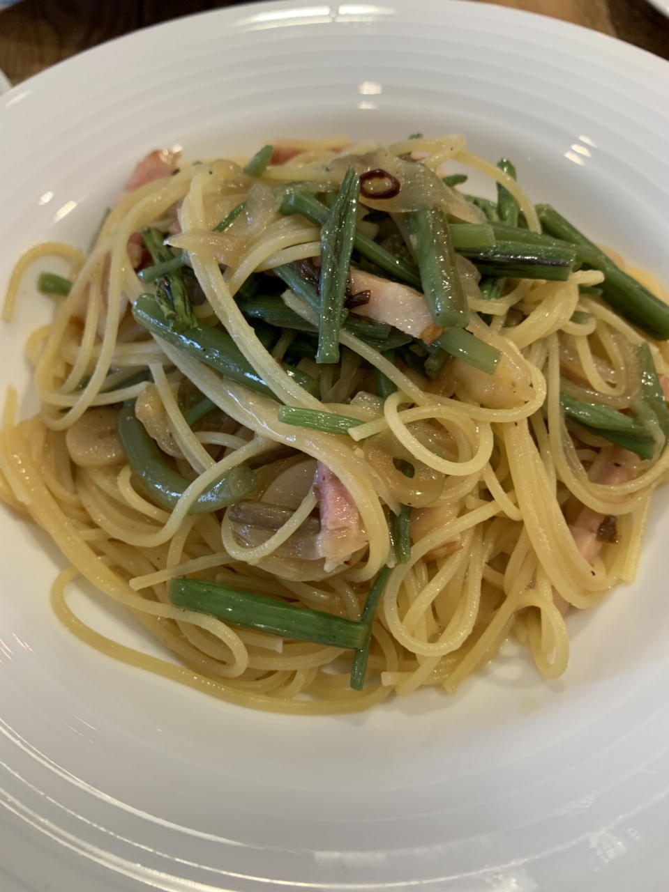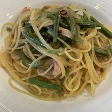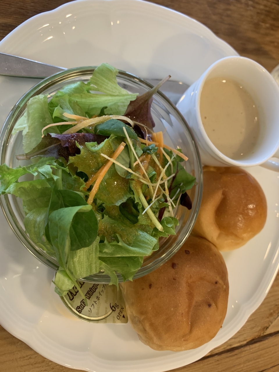 美味しいパン屋さんのデイジイのカフェです。一階はパン屋、二階がカフェになっています。日替わりパスタ、パン、サラダ、スープ付きにしました。日替わりパスタは山菜とベーコンの和風ぺペロンチーノでした。ニンニクをたくさん入れてアジを誤魔化した感じではなく、美味しいぺペロンチーノでした。パンはおかわりができます。単品で頼んだ、マルガリータピザもチーズたっぷりで美味しかったです。