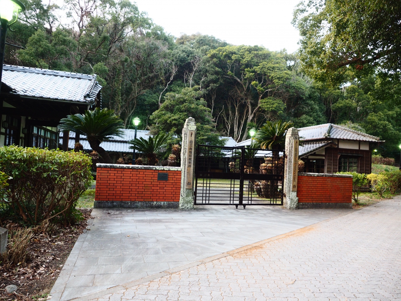 世界遺産に指定されている「三角西港』の裏手にある小高い丘の上に建つ『法の館』は大正9年に建てられた三角簡易裁判所で平成4年まで実際の簡易裁判所として使われていた建物。