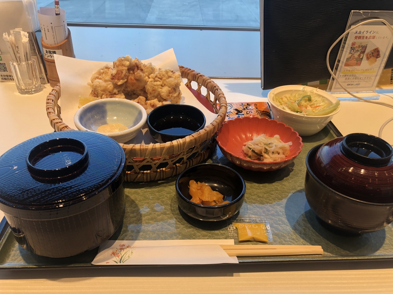大分空港で待ち時間が2時間以上ありましたので、食事を取りました。1番人気のとり天定食は税込1000円と言う安さで、空港のレストランとは思えない安さでした。味はあっさりし過ぎていてご飯に合わなかったので、琉球を追加すれば良かったです。