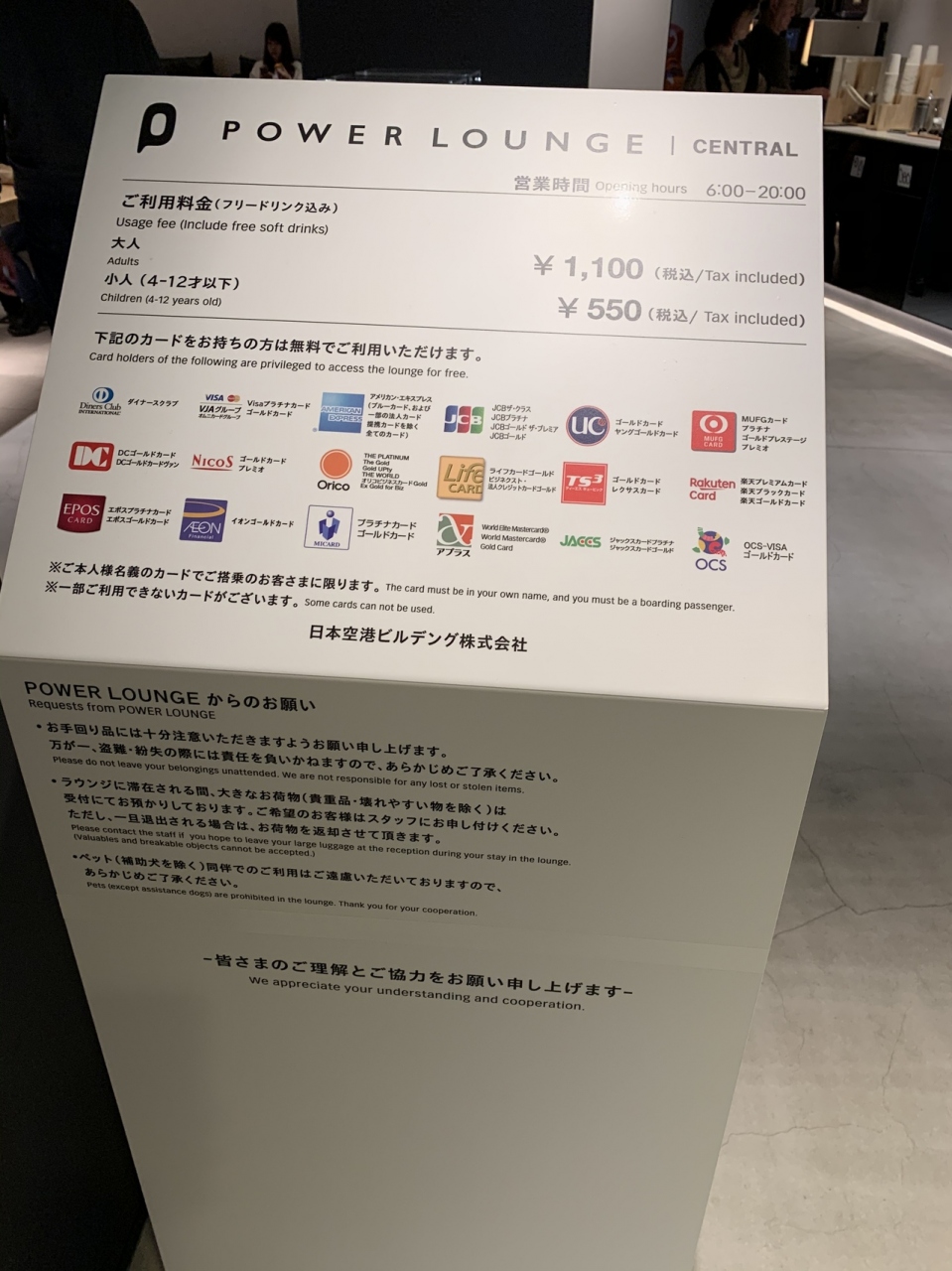 羽田空港内にあるカード会社専用ラウンジです。ゴールドカードを契約しているため利用しました。ゴールドカードを持っていなくても有料で利用はできます。ドリンクが数種類あるため少し時間を潰すくらいはできました。