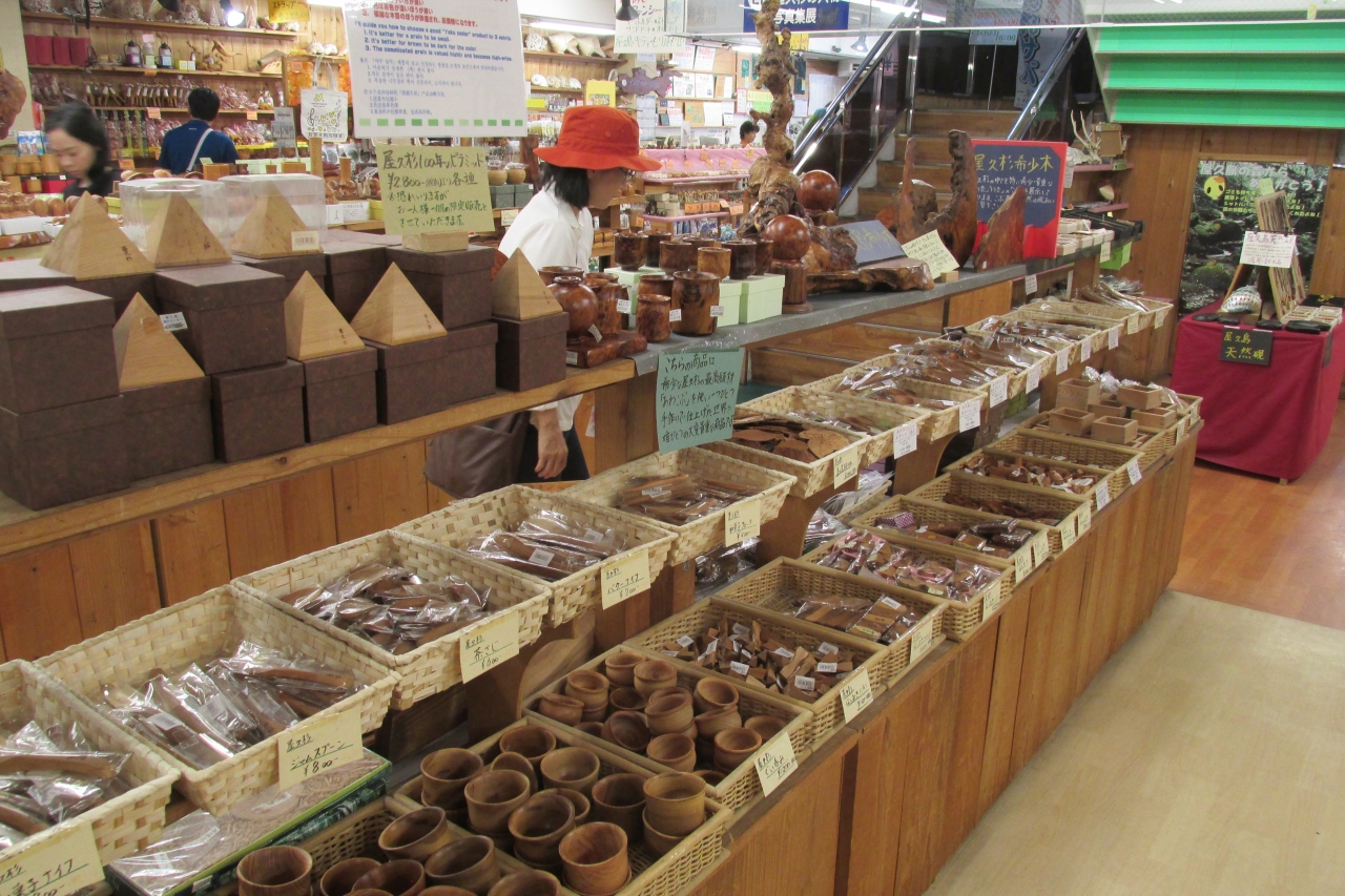 大きなお土産屋さんです。屋久島杉の工芸品、屋久焼き、食品など豊富な種類のお土産を扱っていました。二階のレストランでは、家具が展示されており、購入しないまでも見る価値が十分にあります。外にベンチがあったので、たんかんジュースを買って飲みました。