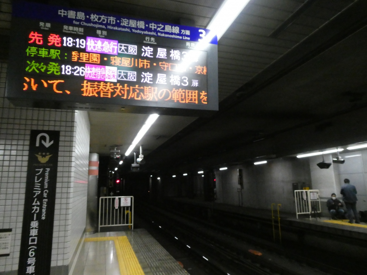 今回利用したのは京都市内の京阪三条駅から終点の大阪の淀屋橋駅までです。