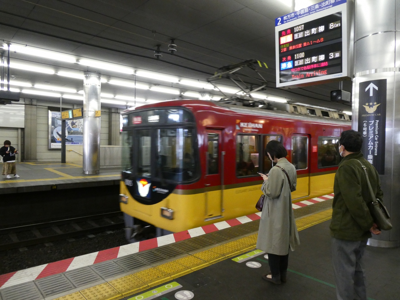 今回は大坂サイドのターミナル駅京橋駅から京阪三条まで特急電車で移動します。