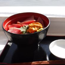 たっぷりとマグロが乗ったどんぶりに、今回はウニをトッピング。