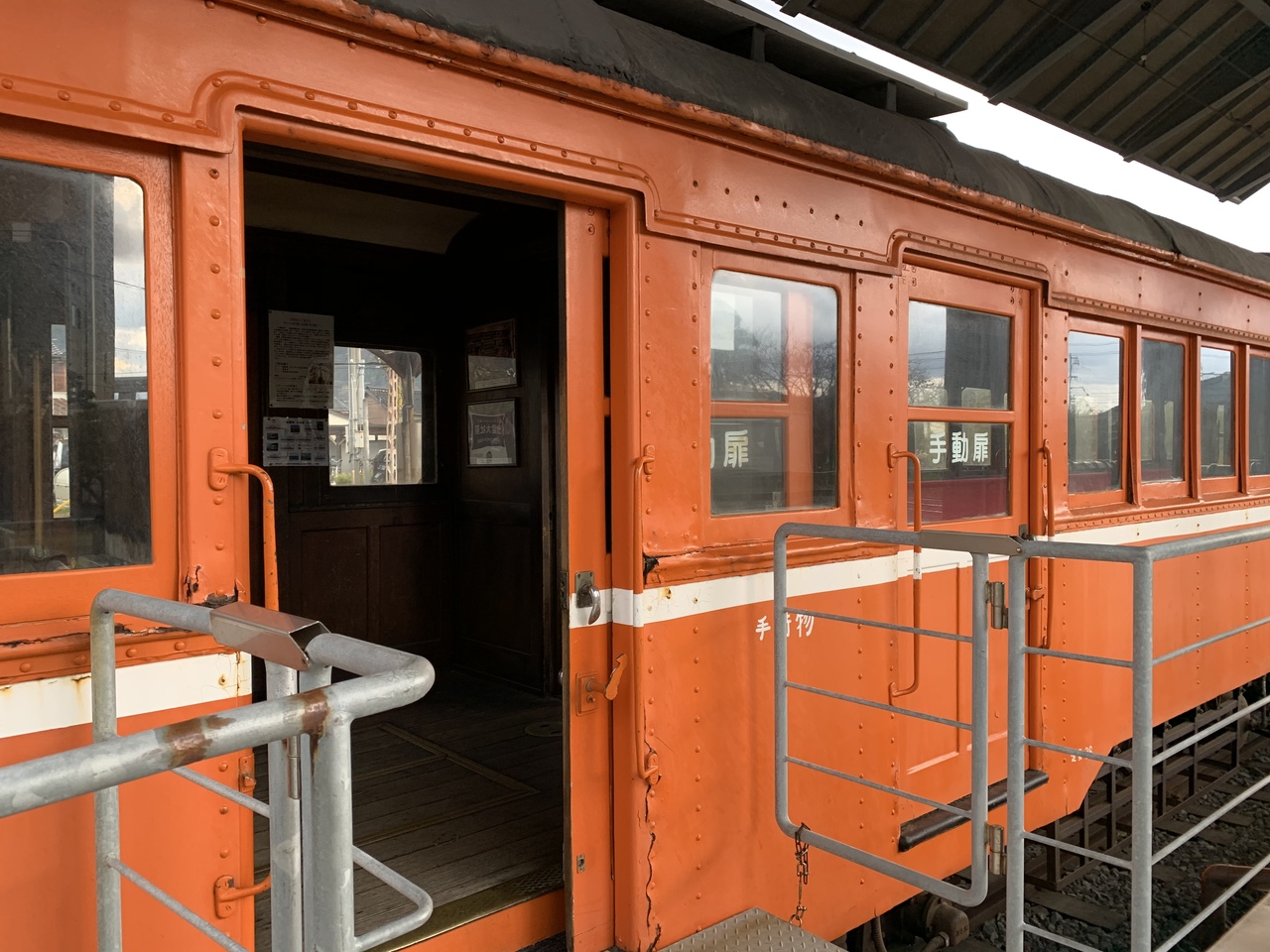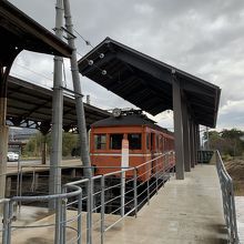 出雲大社近くにある出雲大社前駅から電車に乗りました。券売機はラーメン屋さんの食券のような機械で購入します。駅近くには昔の電車が展示されていて中を自由に見ることができました。電車を利用しない人にもおすすめです。
