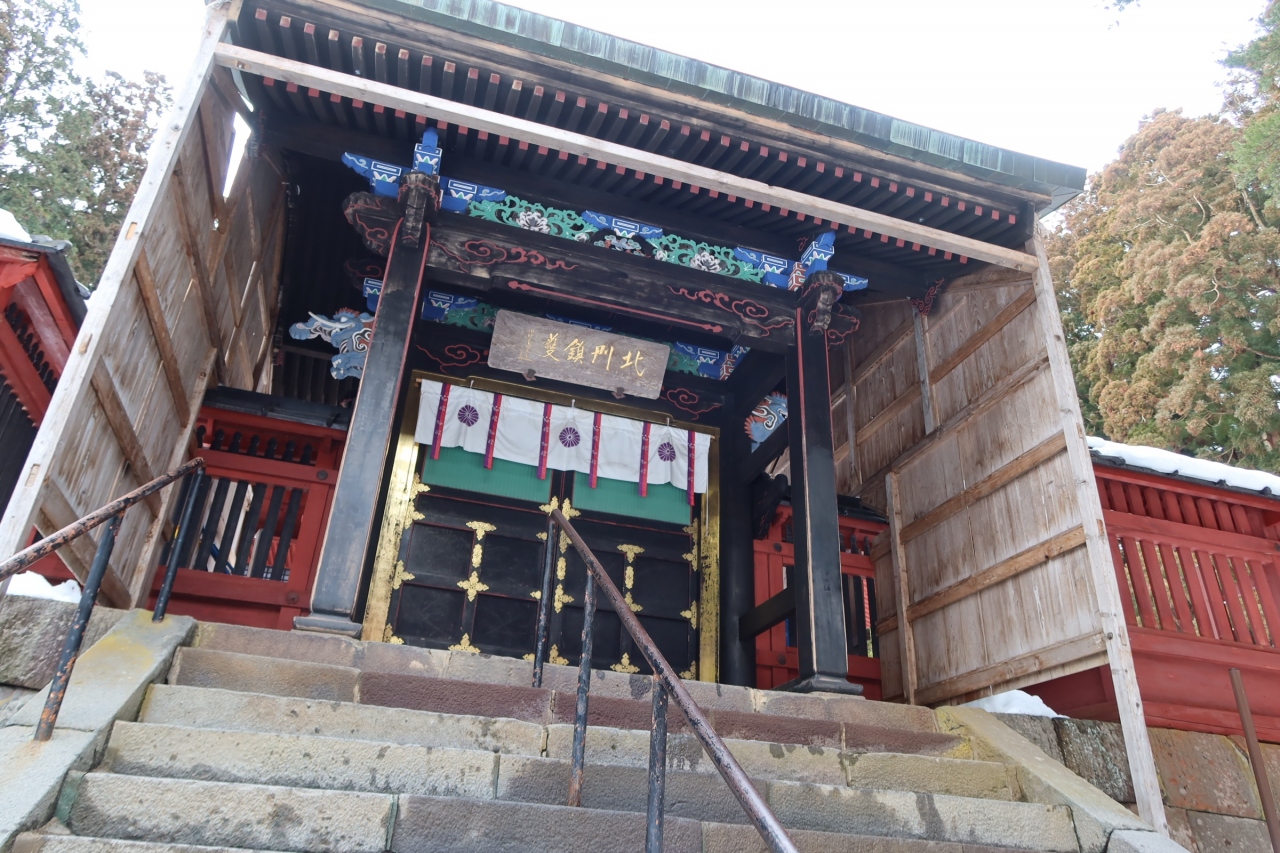 春のシャビシャビな雪があったので参道や階段が滑り易くちょっと難がありましたが、本殿にたどり着くと、その中門や本殿造りの美しさに圧倒されました。