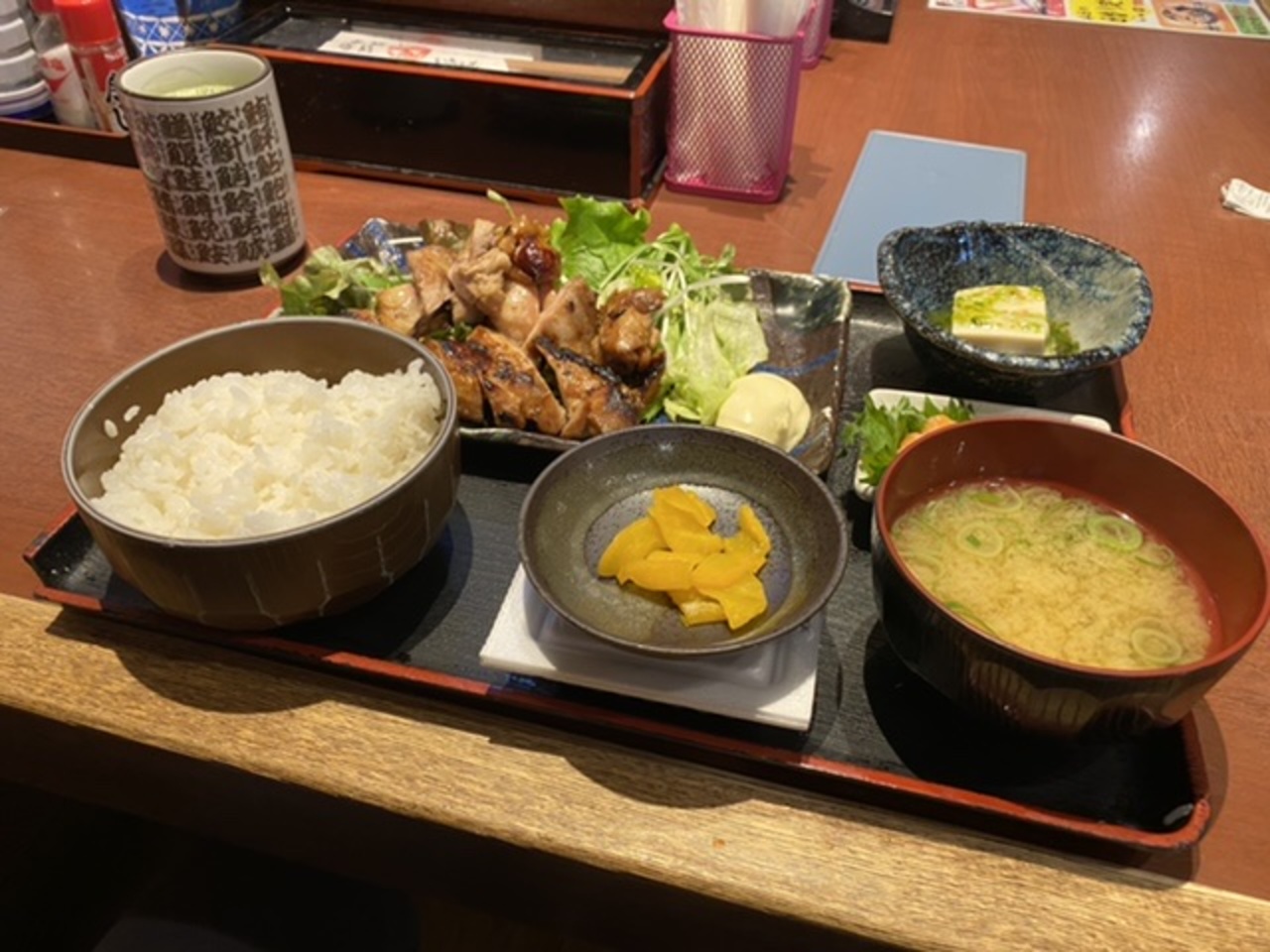 食べたのは本日の日替り定食700円!鶏の照り焼きに小鉢はサーモン刺、納豆、お新香にご飯と味噌汁です。ボリュームあってイイです(^^)