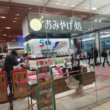 JR金沢駅の新幹線と在来線の改札口向かいにある土産物店です。一度に色々な種類の土産物が見れるので、手間と時間がかからず、オススメの土産物屋です。会計レジも複数あるので差ほど混まないので、その意味でもオススメです、是非。